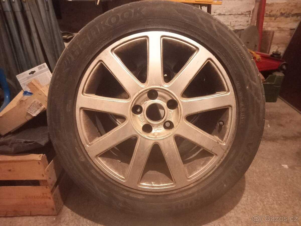 17" original elektrony, hliníková kola pro tezsi auta AUDI nebo VW.. mel jsem na vw T4 - 5x112, střed 57, obute hankook, léto, zatezove, na dojezd. Cena za celou sadu 5000,- pouze jako celek.