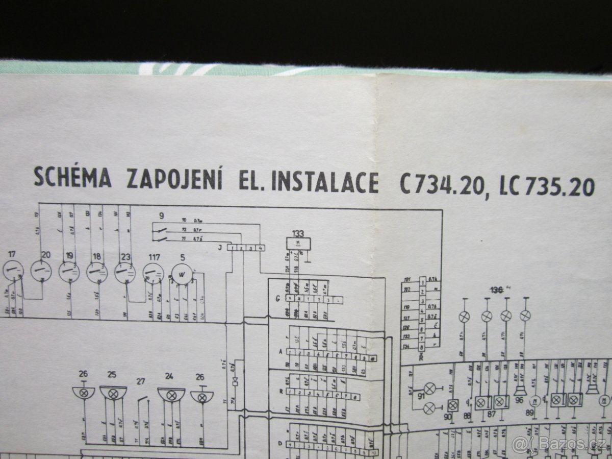 Prodám SCHÉMA ZAPOJENÍ EL.INSTALACE + popis jednotlivých spotřebičů AUTOBUSU C 734.20, LC 735.20.Cena včetně poštovného.