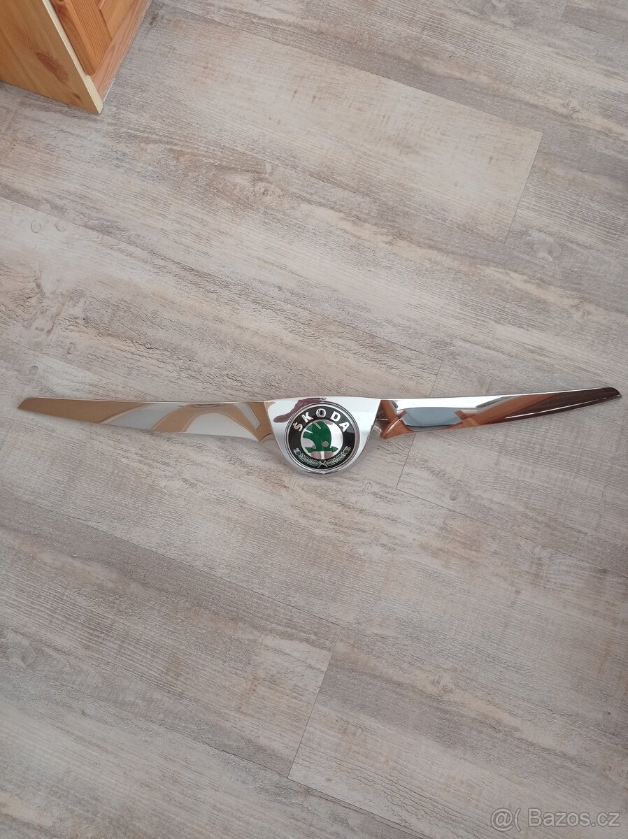 Prodám úplně novou chromovou lištu přední kapoty+včetně znaku! Pro Škoda Fabia