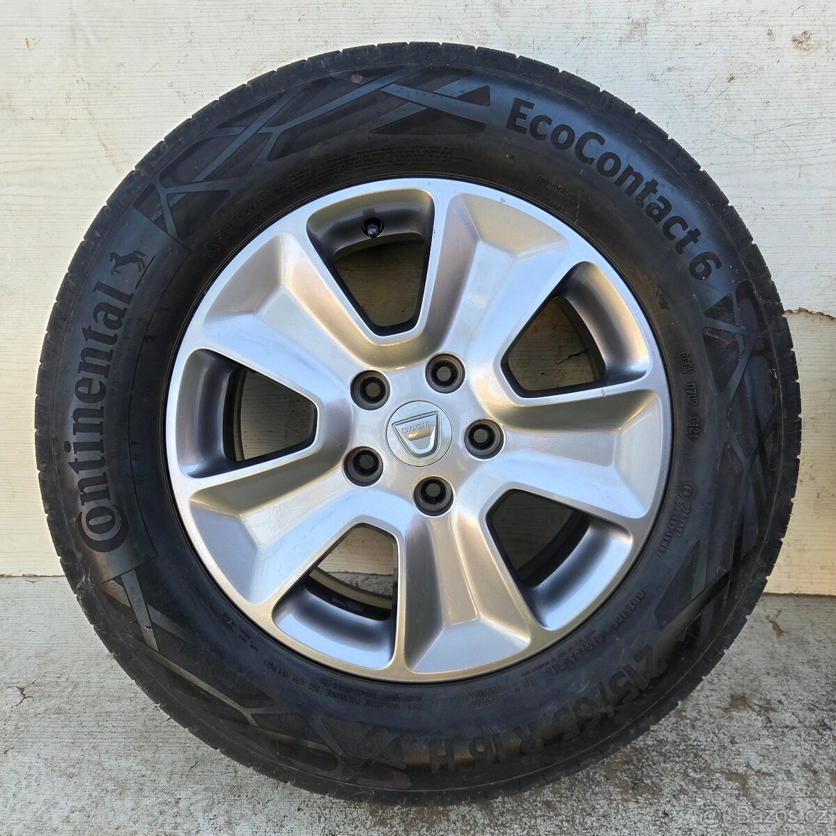 Prodám sadu originálních Alu kol z vozu Dacia Duster v rozměrech 6,5Jx16 ET50 a rozteči 5x114,3x66 obutých do pneumatik Continental EcoContact 6 215/65R16 98H DOT0121 se vzorky okolo 4mm. Jedna pneu je proražená a 1 disk má větší oděrky.