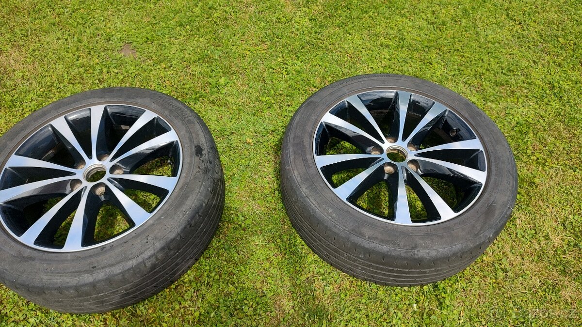 nabízím kola v pěkném stavu, použité, celé s pneu- nepoškozené nárazem, jen drobné kosmetické oděrky-někde, jinak nebourané a neopravované, orig. výrobce MOPAR na JEEP COMPASS nebo i jiné vozidlo, disky(kola) 7.0x18 ET 42(možná40),rozteč 5x114,3mm, střed. díra na náboj 67mm ,gumy letní continentál hl.4,5 mm,215/55/R18, pozn.PNEU spec. zatěžové na SUV (jen PNEU stálo nové-3.400/ks v bestdrive), (pův.cena za nový DISK - 3500/ks),- První majitel a na jediném autě.(foto nových disků je, že jsem je kupoval nové..