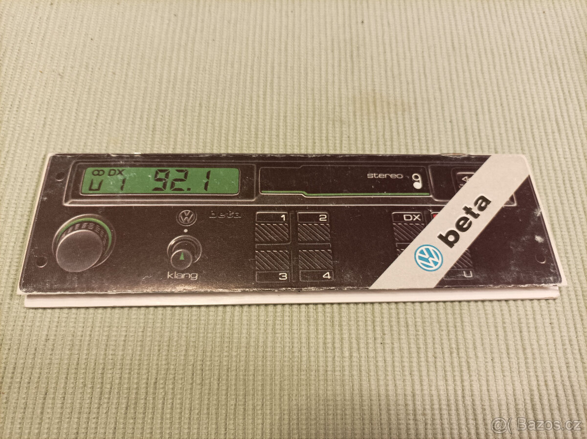 Prodám tento návod k autorádiu VW Beta druhé generace,top stav,edice z roku 1989,cena pevná