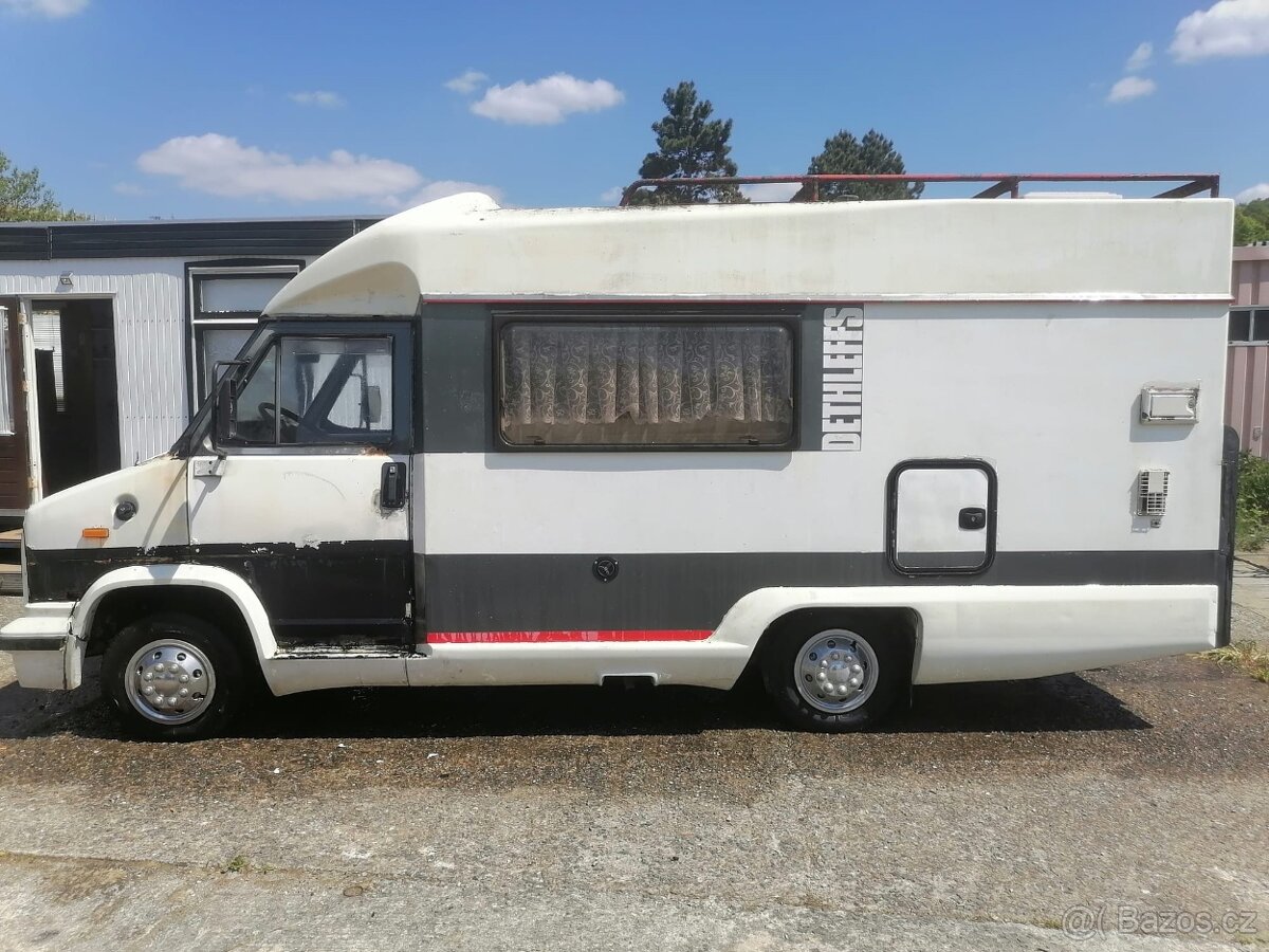 Obytný automobil Fiat 280, nástavba Dethlefs, rv 87, 2,5td, 53 kW , najeto 227000 km, tažné zařízení, koupelna , bojler , plynové topení , kuchyňka . Německé doklady k přihlášení. Vhodné na renovaci.