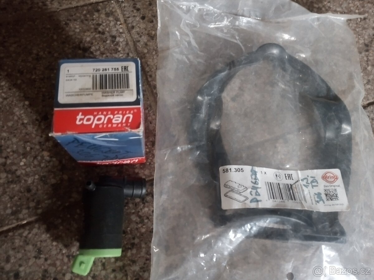 Náhradní díly na Peugeot 306, nepoužité. Těsnění víka hlavy válců a čerpadlo ostřikovačů.