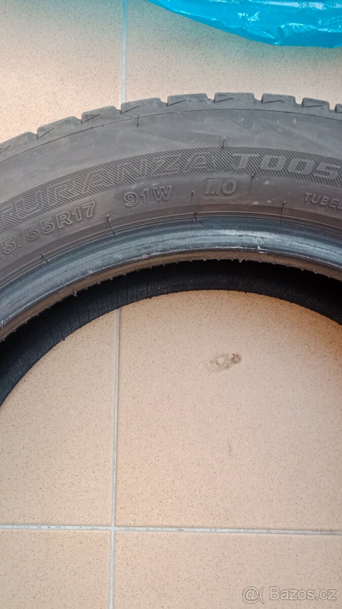 Prodám 4ks letních pneu Bridgestone Turanza T005 205/55/17 91W, vzorek 7mm.