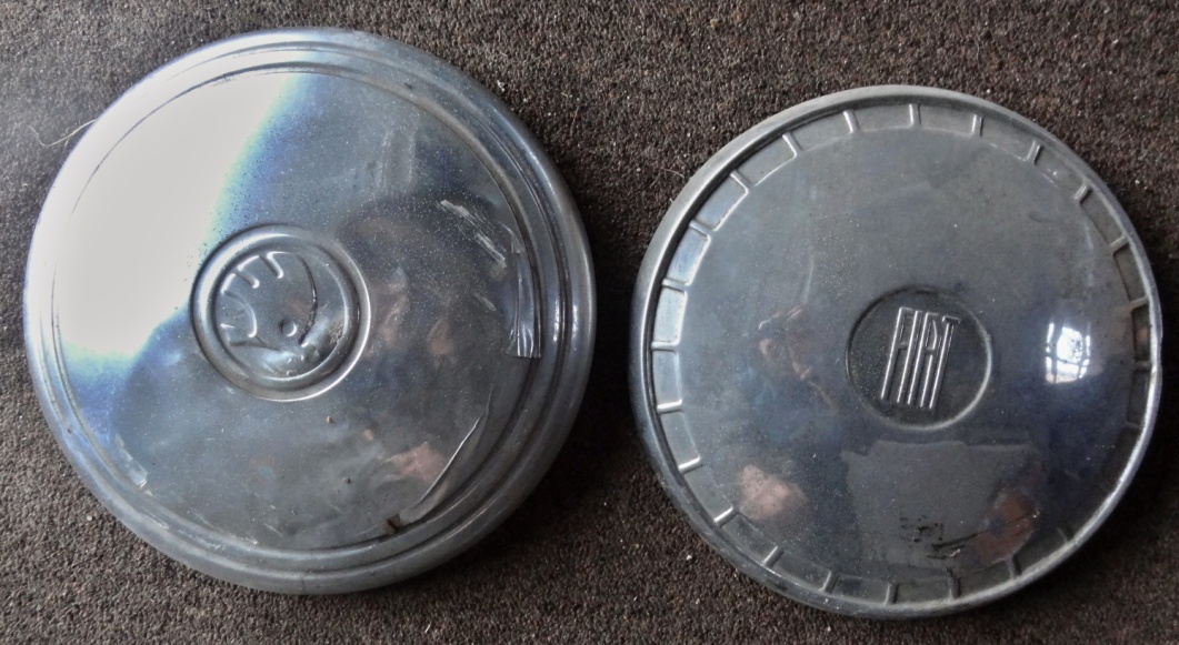 1 ks puklice Škoda (Š asi 100, průměr 255 mm), a 1 ks puklice Fiat (asi F 500,600, průměr 240 mm), cena 400,- Kč / ks