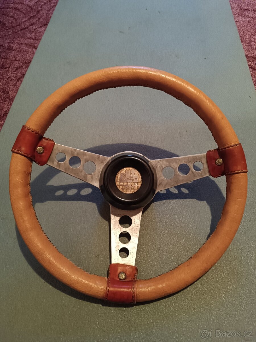 VETERÁNI,VETERÁN,AUTOVETERÁNI,TRABANT. Dobrý den.Prodám sportovní na Trabanta 601, lze použít i pro vozy škoda. Můžu dat škodováckou nabu. Volant byl ručně obsit kůží na zakázku .Volant o průměru 32 cm,výrobce bylo Výrobní družstvo Kolínské nástrojárny a pochází ze 70-80 let minulých let.Použití bylo pro sprortovní styl jízdy.