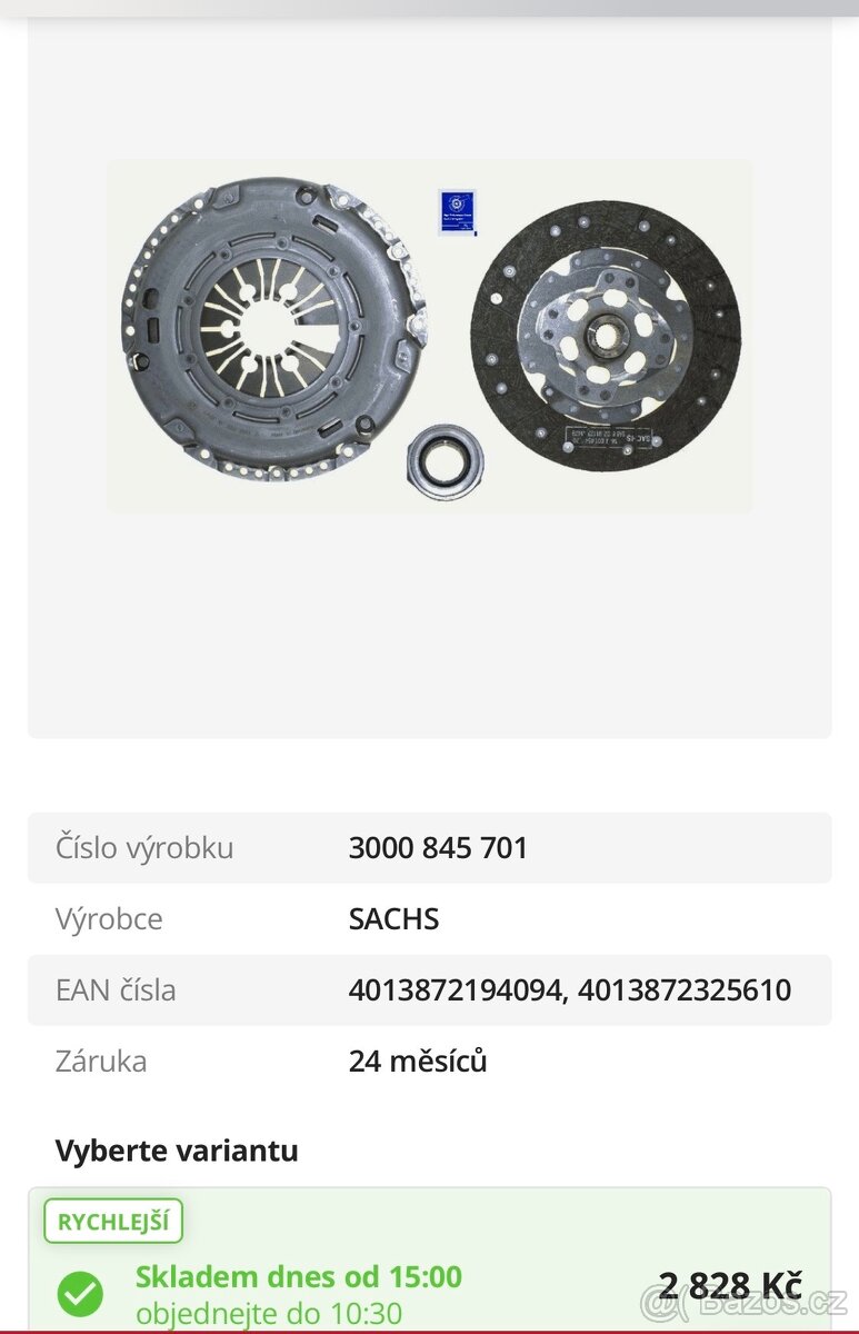Spojka SACHS pro octavia 1.9 66kw, nepoužitá, zabalená