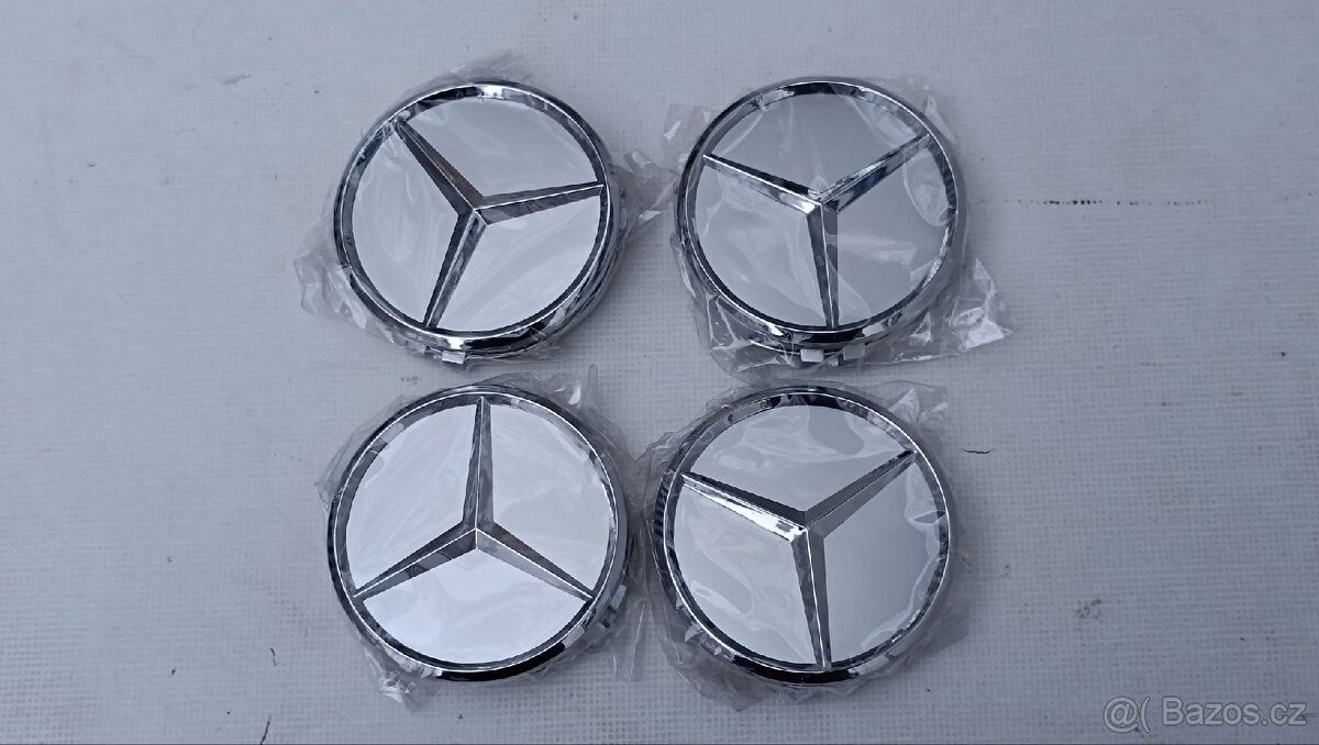 Prodám 4 nové, ještě zabalené středové krytky na Mercedes, stříbrné, lesklé. Cena za komplet.