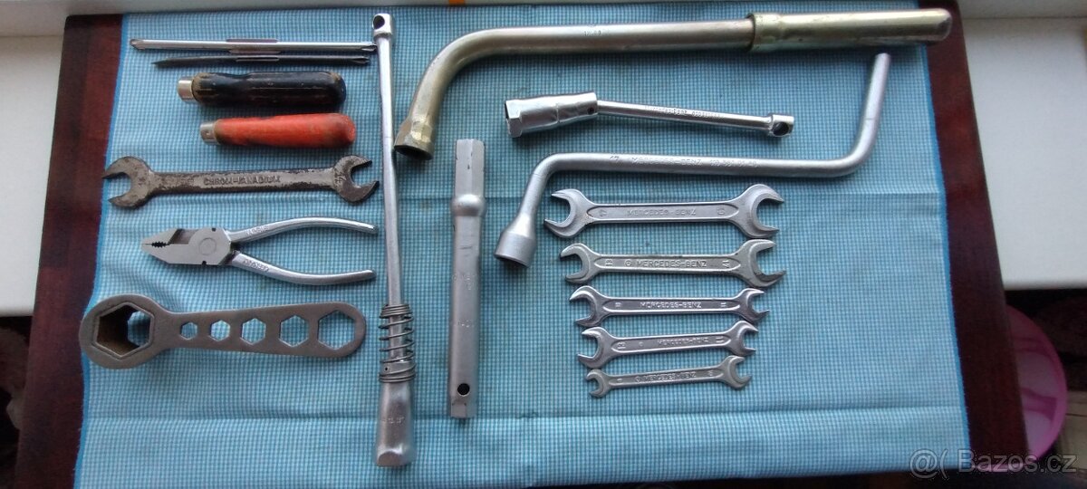 prodám nářadí starší i novějšího data k Mercedesu,orig.Německo. Kvalitní výroba,vše je normálně funkční.Ploché klíče po 150,-/ks,ostatní nabídněte sami cenu. Prodám alespoň po pár kusech ,po jednom neprodávám.Osobní převzetí u mě na Praze 4, popř. po dohodě můžu poslat klasicky č.poštou (90-120,-dle tarifu č.pošty)
