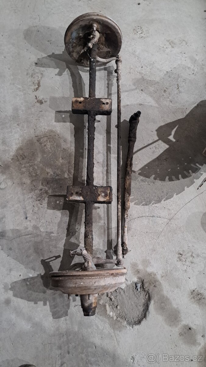 přední náprava - [12.12. 2025]nabízím mechanick bržděnou přední nápravu z automobilu nejištěné značky - zřejmě stará Praga, některé štefty mají opačný závit - viz foto