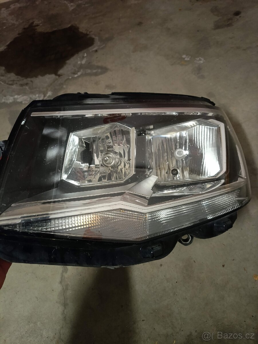 SVĚTLOMET PŘEDNÍ LEVÝ VOLKSWAGEN TRANSPORTER Multivan Caravelle T6 , funkční, není prasklé, držáky ok, kompletní i s žárovkami. Je jen škrablé, nejspíš půjde rozleštit.