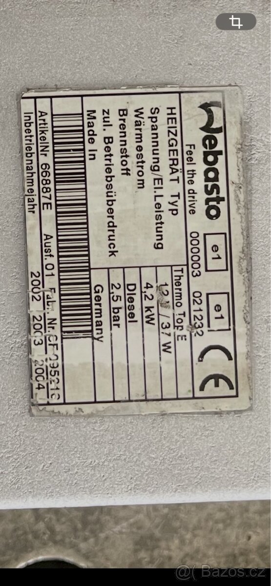 Prodám webasto thermo top E. Je funkční a po repasi, vše vyčištěné, opískované. Nové díly. Mohu doložit fotkami.