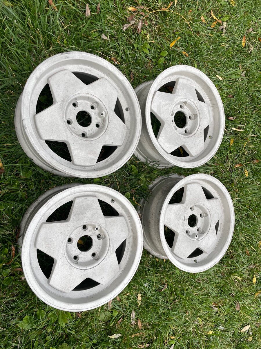 Alu disky Renault 5 Alpine 5,5Jx13 - [21.2. 2026]Kola Renault R5 Alpine turbo Elia Germany - malá serie, dobový tuning, vhodná k renovaci, límce jsou místy odřené. Pasují na R4, R5, R7, R6. kontakt tel., WhatsApp, e-mail, sms, možnost i případně zaslat za 324,-