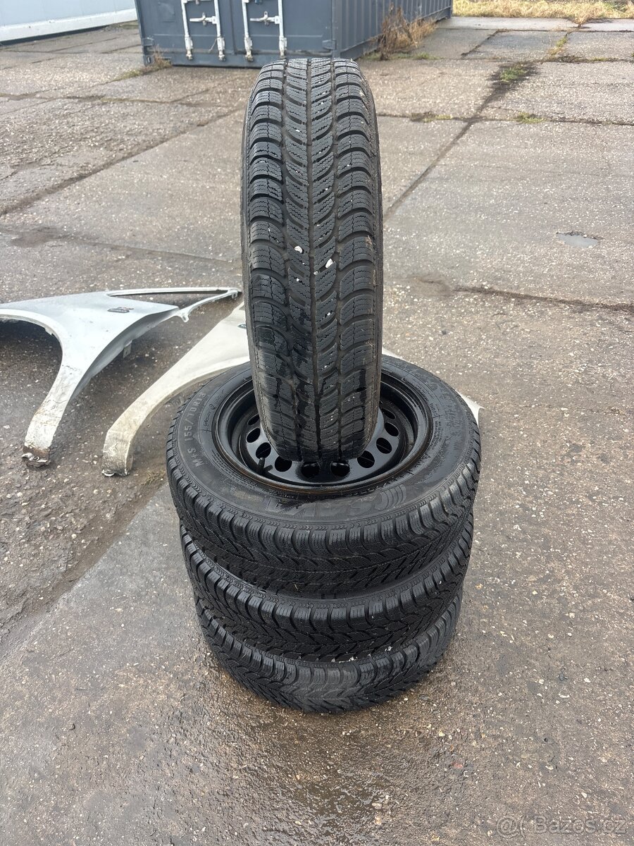 Prodam kompletni zimni kola z vozu Nissan Micra s pneu 155/70r13 Sava eskimo vzorek 7-8mm, roztec 4x100. Cena za kompletni 4kola s pneu je 1200kc