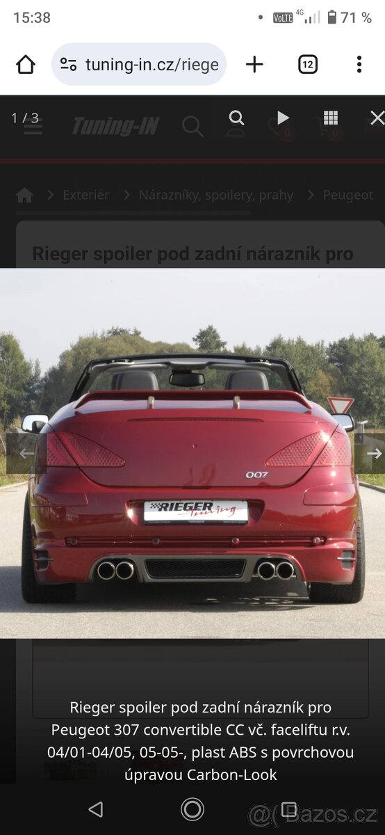 Prodám na Peugeot 307 cc nový zadní podnaraznik rieger tuning homologovaný + 2 koncovky výfuku
