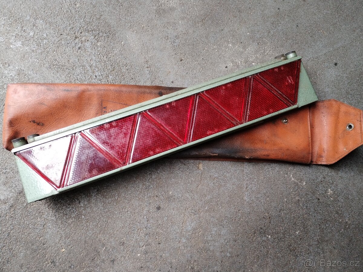 Trojuhelník v koženém pouzdru - [2.1. 2026]Starý výstražný vhodný do dobového vozu. Masivní provedení. V krásném stavu.