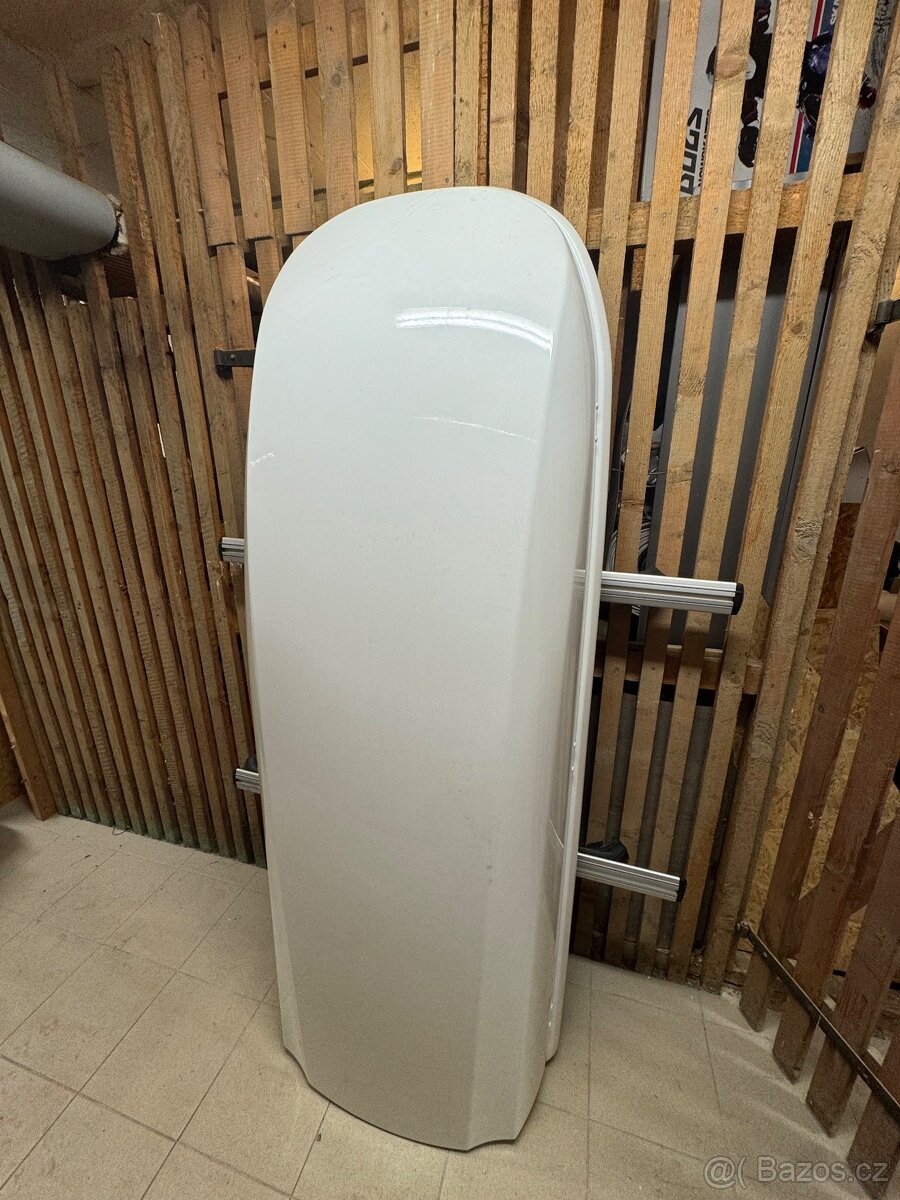 Prodám bílý střešní box Neumann X Line. Tři roky starý, za tu dobu jednou použitý. Připevněný na příčnících Auto Elson na Audi A6 B7.