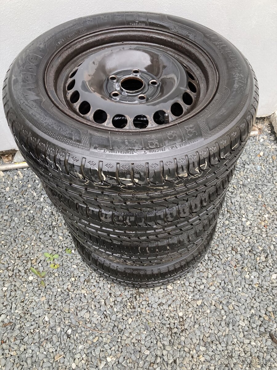 5x100 r15 195/65/15 zimní pneu. Octavia 1, golf 4, seat - [7.2. 2026]Prodám tyto plechové disky se zimním pneu hankook 195/65/15, kola jsou sundané z auta kvůli výměně kol za lité.