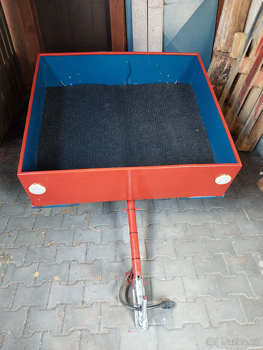 Vozík je možný zakrýt plechovým víkem. Užitečná hmotnost nákladu 230 kg.