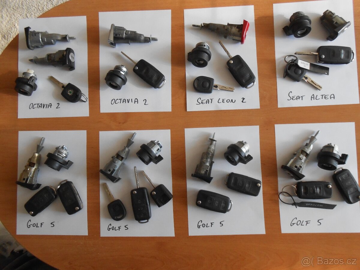 Prodám sady zámků z vozidel Škoda Octavia 2, Vw Golf 5, Seat Leon 2, Seat Altea. Sada : zámek dveří, vložka spínačky a klíč. Sady Octavia 2, Leon a Altea jsou s jedním klíčem po 400 Kč. Sada na Vw Golf 5 je se dvěma klíči za 800 Kč. K vyzvednutí ve Žďáru nad Sázavou.
