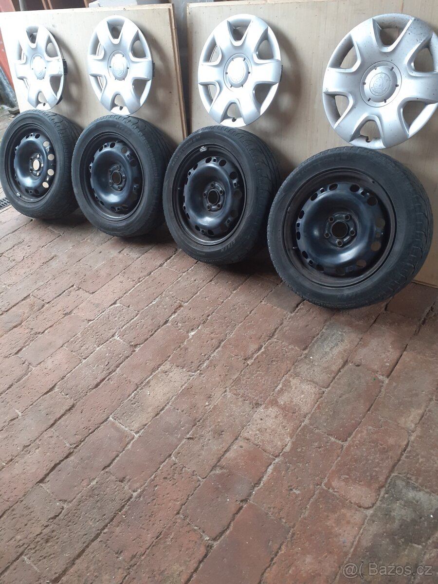 Prodám disky 15 s pneu plus origo poklice pneu asi na dojeti spís by to chtělo vidět cena za vše 2600 kč pouze osobní odběr neposílám