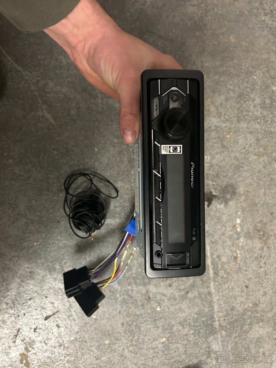 Prodám autorádio Pioneer s bluetooth připojením, červené podsvícení, před vytažením z auta plně funkční.