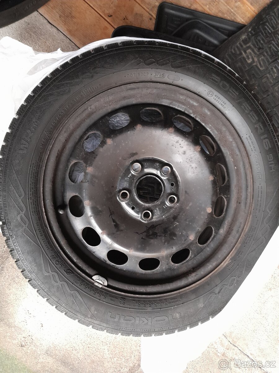 plechove disky vcetne pneu - [11.2. 2026]prodam plechova kola vcetne oneumatik s velmi slusnym vzorkem. vse viz prilozene foto roztec 5x100 pro octaviaˇ, yeti a podobne.