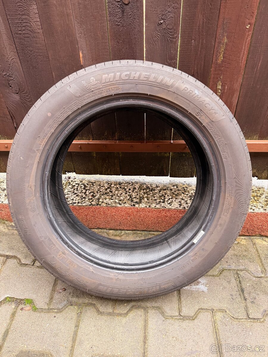Prodám sadu letních pneumatik Michelin (4ks) primacy 4 S1. 205/55/17. Stáří 2 roky. Najeto 17 000km. Vzorek 5mm. Tel.724 754 435. Email p.short@seznam.cz.