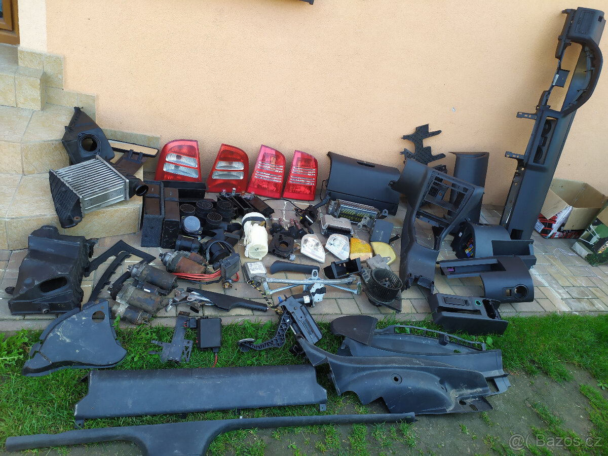 Octavia RS - zadní plato kufru, startér, zadní světlo, blinkr, filtrbox, váha vzduchu, ruční brzda, kastlík, černý interiér, páčky volantu, airbagy, pásy, plast pod volant, středový tunel, motorek stěračů, motor, dveře, střešní okno, tapce, stropnice, zrcátka, páté dveře, řídící jednotka, perforovaná řadící páka, cooler, popelník , cívky, madlo dveří, benzínové čerpadlo , brzdový pedál, torpédo, ventilátor topení, kroužek volantu, držák prevodovky. Můžu i poslat. Mám i díly z dieslové octavie 1,9/66kW.