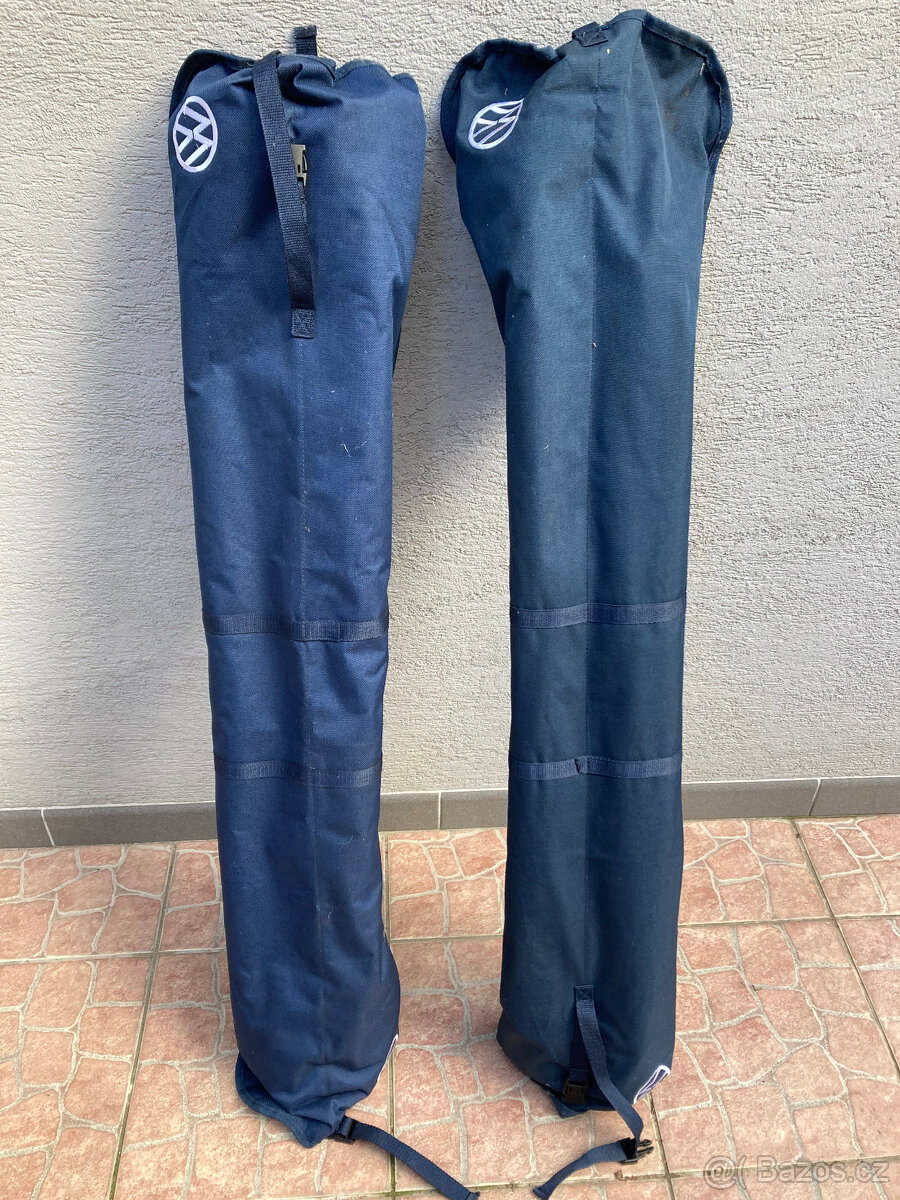 Koupeny v roce 2021, používány během léta, v zimě uskladněny v interiéru. Kovové (ne alu; mají vyšší nosnost), nastavitelná šířka.