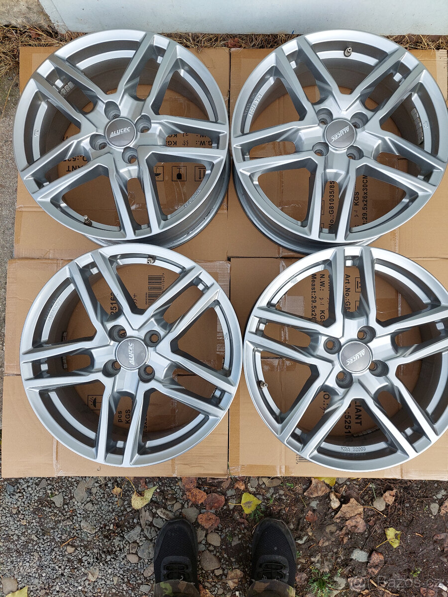 Prodám zánovní alu disky ALUTEC Ikenu metal grey, 4x100, střed 54,1mm, 6,5Jx17H2, ET49. Demontované z KIA stonic.