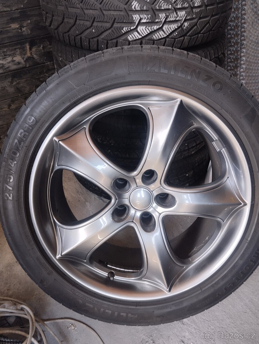 Prodám,sadu al kol na BMW rozteč 5x120,r19 et20 ,se slušným vzorkem 2x 245/45zr19, 2x 275/40zr19 viz foto
