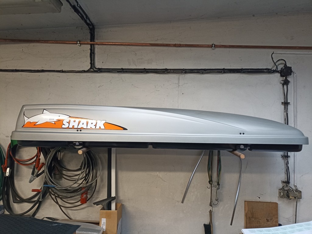 Starší střešní box SHARK o rozměrech cca 213 x 50 x 30 cm (délka x šířka x výška), barva stříbrno-černá, uzamykatelný ve dvou bodech, otevírání jednostranné (pravé), uchycení pomocí "U" profilů, s možností protažení popruhů pro uchycení nákladu / lyží (popruhy nejsou součástí). Robustní konstrukce, nepoškozený, neopravovaný, málo využívaný. Odběr možný ihned. Pouze osobní převzetí. Inzerát je platný do smazání.