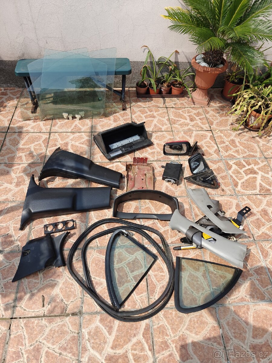 Prodám tyto díly: zadní okna malá 300, velká (sedan) 200, přední levé okno 150, spodní plasty na sloupky 100 , držák baterie 100, plast na ovládání klimatizace 50, guma kolem kufru (sedan) 100, přihrádka 200, pásy přední 500, zrcátka 250 psát mail, sms ideální osobní převzetí malé věci možno poslat zasilkovnou