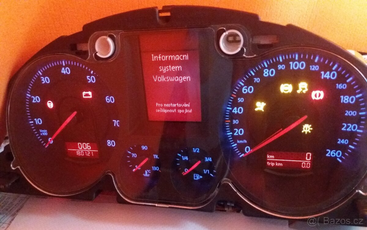 Budíky pro VW PASSAT B6 benzin, originální použitý díl 3C0920870T. Červené podsvícení. Po domluvě možno předat v Praze, Kladno, Kralupech nad Vltavou. Inzerát je platný do smazání!
