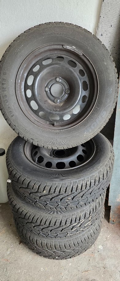 Prodám 4 zánovní zimní pneu včetně plechových kol z vozu Citroen C4.