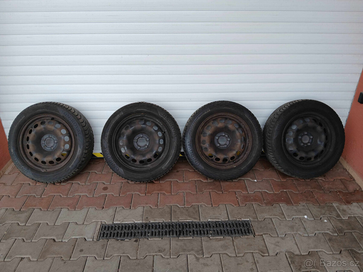 Fiat Tipo originální disky model 2015-2025, 6.5x16" ET39, 5x98mm šrouby, disky rovné, mírná koroze. Pneu Uniroyal celoroční ALLSEASONEXPERT 2 -205/55 R16 , 94V. Alpsky symbol. Výroba 19/2024. vzorek 4x7mm. cena 4999kč. Pro lepsi komunilaci cislo sady 65.