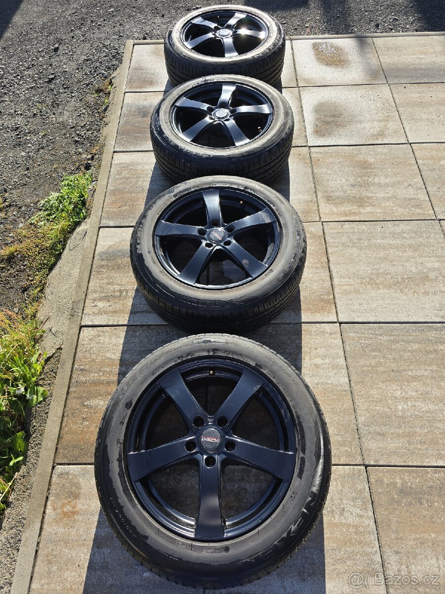 Prodám kompletní kola . Elektrony plus pneu. Kola prodávám tátovi , elektrony mají 5/114,3 a pneumatiky jsou Nexeny 225/55 R17 101W ( měli by být na vyšší zátěž ). Táta je používal jen jednu sezónu jsou v pěkném stavu. Používal je na Land Roveru Freelanderu. Vzorek velmi pěkný viz foto . Přidal jsem ilustrační foto jak slušely Freelanderu. Stejnou rozteč kol mají některé modely značek - Hyundai , Kia , Mazda , Mitsubishi , Nissan , Subaru , Renault , Honda , Ford atd.