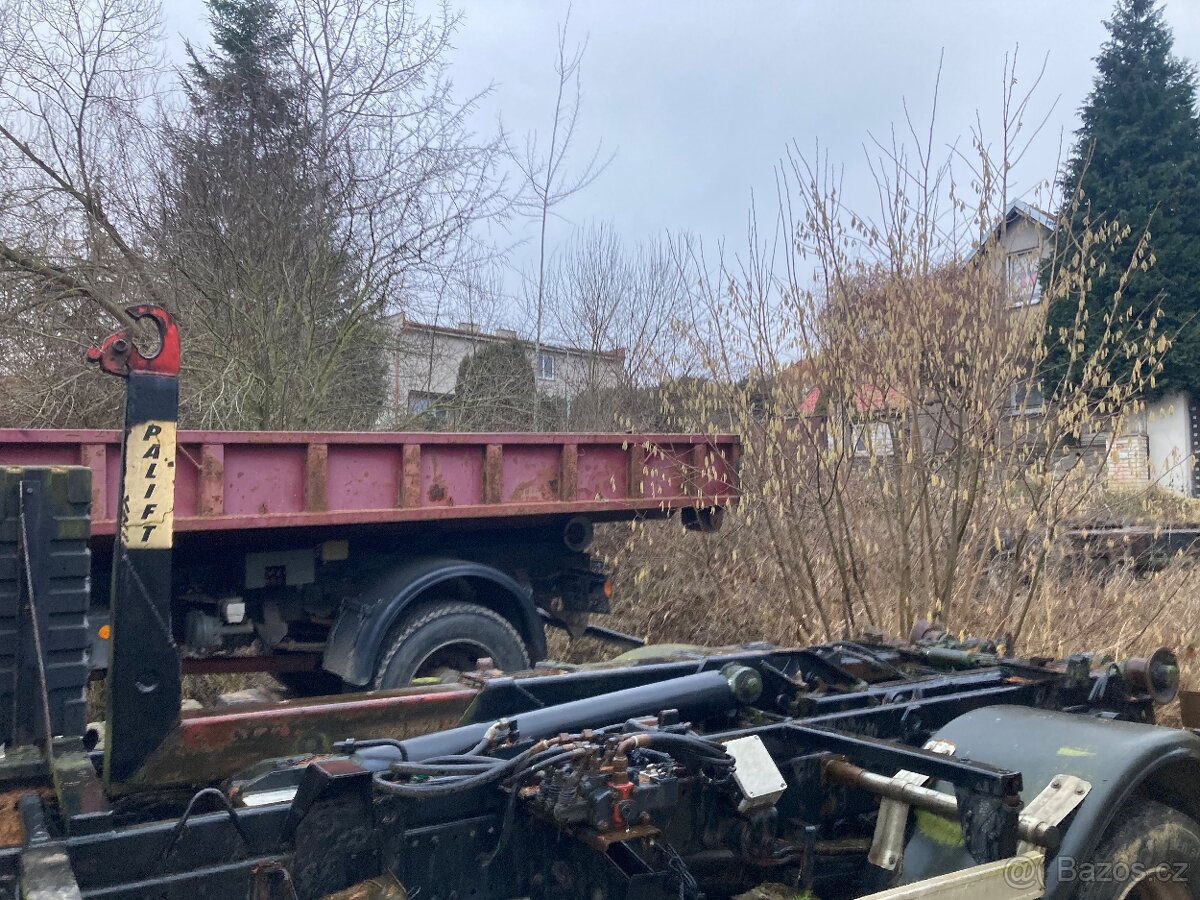 Prodám hákový nosič kontejnerů teleskop PALFINGER s výškou háku 1 metr,kompletní-hydraulická nádrž,pneumatický rozvaděč i s mechanickým ovládáním,pneu.ovládání z kabiny,pro kontejnery o délce 3300-4500mm,téměř identický nosič jak Charvát CTS Okřínek,Technocar,Navara,Fornal atd.,ideální pro vůz o celkové hmotnosti 10-14 tun,po dohodě mohu dodat i pomocný pohon PTO na převodovku ZF,IVECO,MERCEDES i hydraulické čerpadlo,cena konečná dph není,více info po telefonu a prosím jen volat.