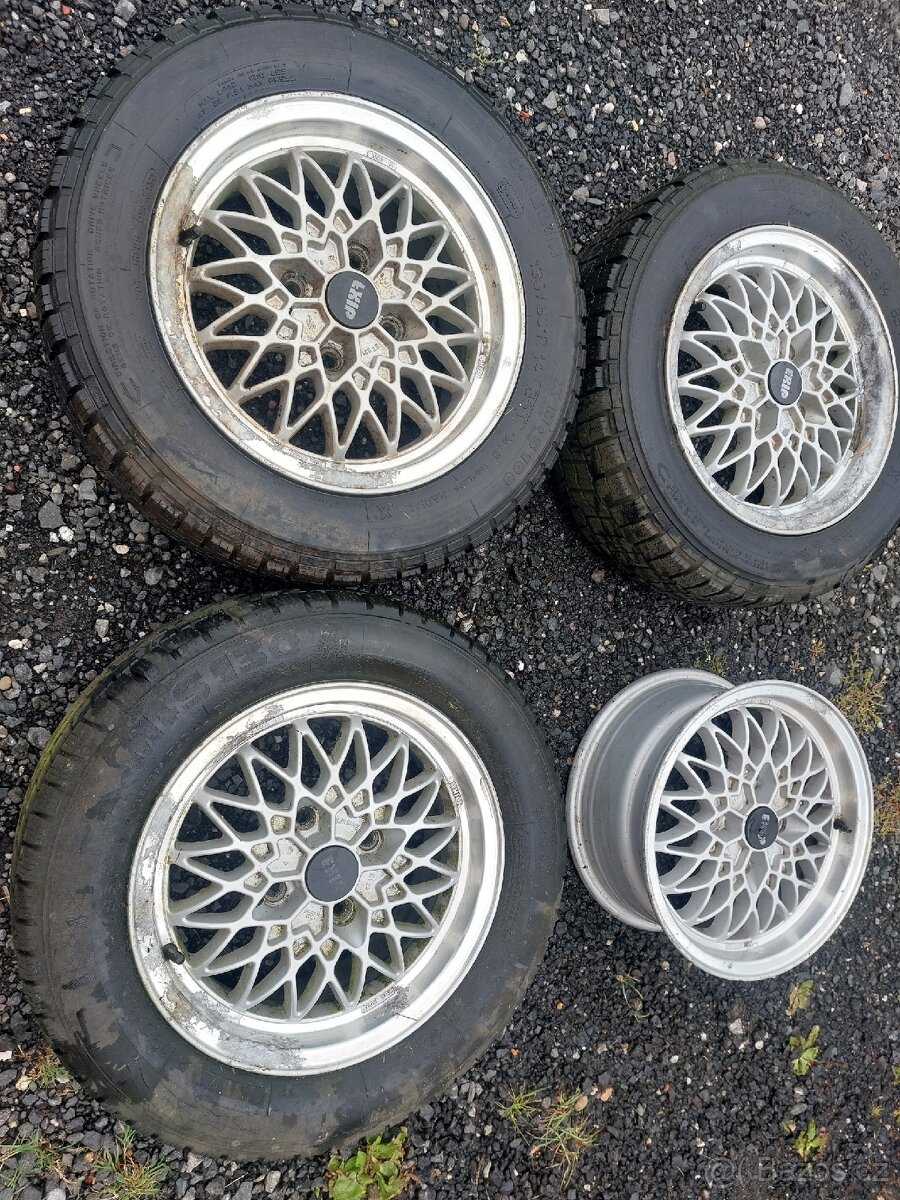 Retro alu kola na nenáročnou renovaci, byly na Audi 80, 90 Coupe Quattro, možná by šli i na Ford escort, fiesta, sierra, focus atd. Stav viz foto, prodávám tak jak jsou, pneu na výměnu.