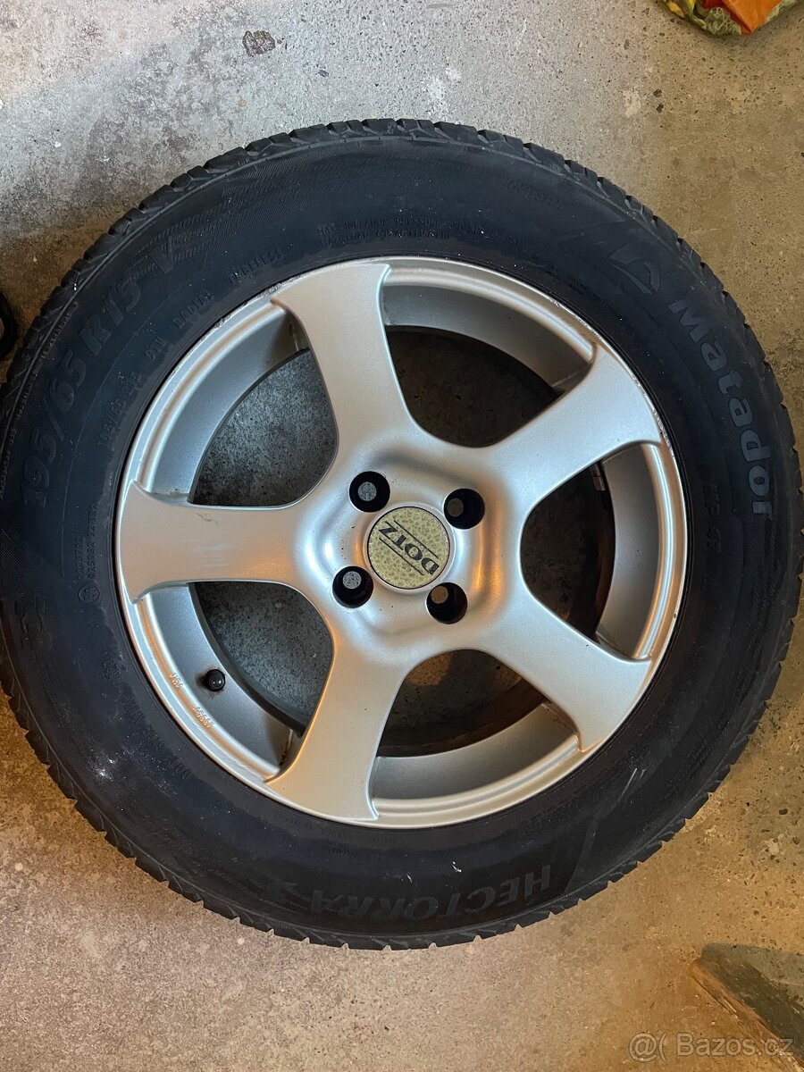 Prodám sadu letních kol z renault megane 2.Rozteč 4*100 ET 38.Dvě kola maji pneu Barum Bravuris 3 195/65 r15,pneu na dojetí.Dvě kola mají pneu Matador Hectorra 3 195/65 r15,pneu maji 90% vzorku,dot 20.Cena za celou sadu.