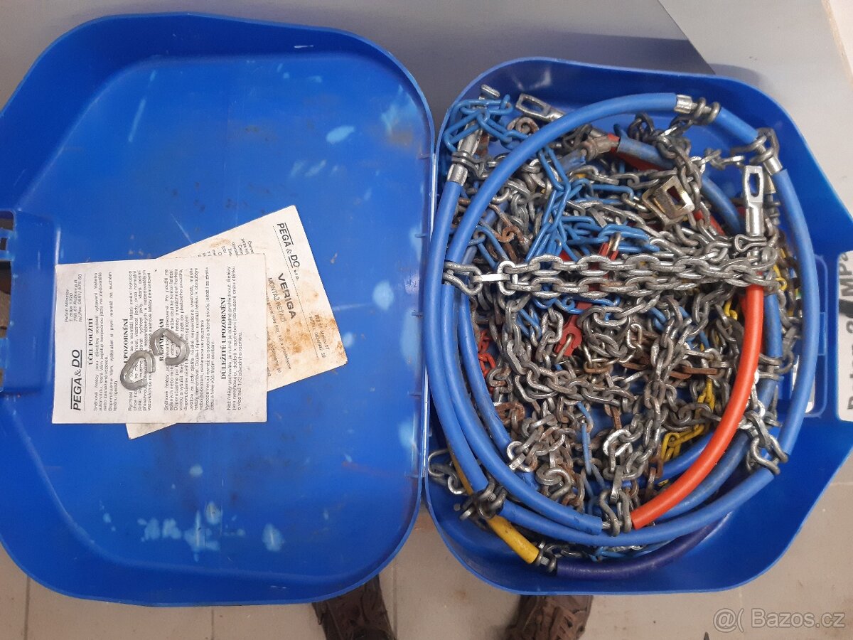 Prodám zimní sněhové řetězy jednou použité pro kola rozměr 165/70-13 nebo 185/60-13 viz obrázek.