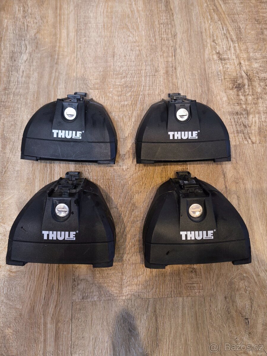 Nabízím patky Thule 753 4 ks úchytů včetně zámků a klíčů.Patky jsou jsou vhodné pro auta se zapuštěnými podélníky,používáno na Vw Passat combi B8