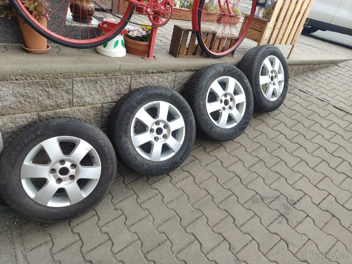 Prodám sadu ALU disků originál Škoda 5x112 6x15 et47. Disky jsou v pěkném stavu. Jsou nazuty letní pneu 195/65 r15 s hloubkou dezenu 2ks 7mm, 2ks 5mm . Středové pokličky jsou samozřejmostí jen nejsou na fotkach.Kola jsou vyvážená jen nasadit. Hodící se pro vozy Škoda Octavia 2,3, Superb1, VW Golf 5, 6, 7, Touran, Caddy , Seat, Audi. Cena je za celou sadu. Pouze osobní odběr, místo odběru Telč.