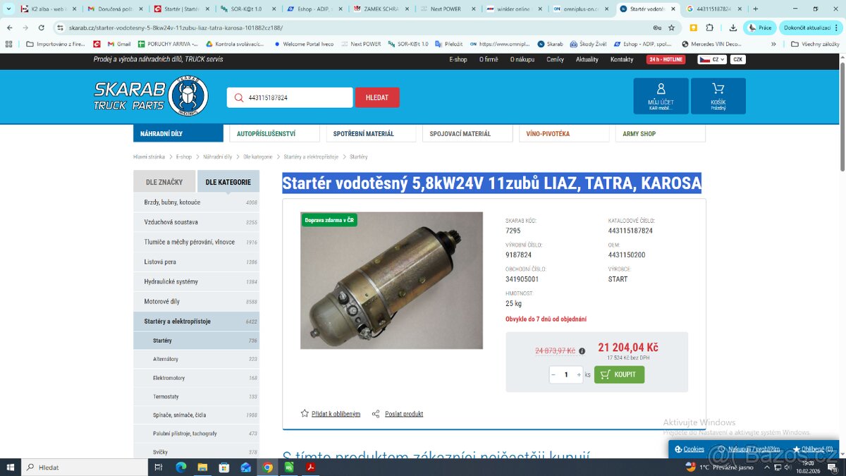 prodám nový díl startér Tatra, Karosa, Liaz (44311518724, 4431150200, 9187824) 5,8kW 24V