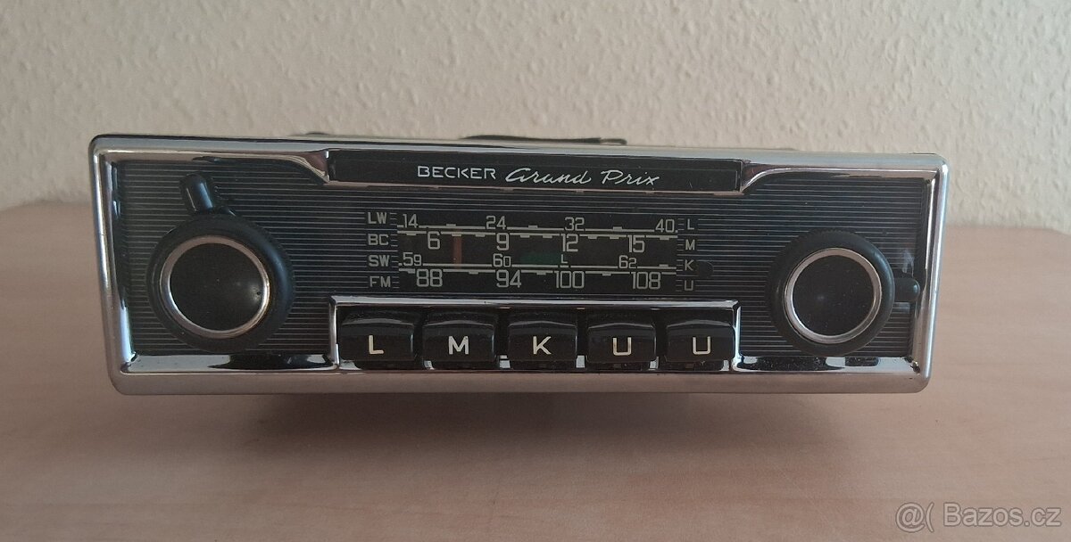 Prodám Becker Grand Prix - chromová verze z 60-tých až 70-tých let. Rádio je ve velmi pěkném a zachovalém stavu. Chrom je nepoškozený a clona z plexiskla nepoškrábaná. Včetně původní knížky Becker. Vhodné především se do vozů Mercedes-Benz, ale i Ferrari, Jaguar, BMW, Maserati, atd.