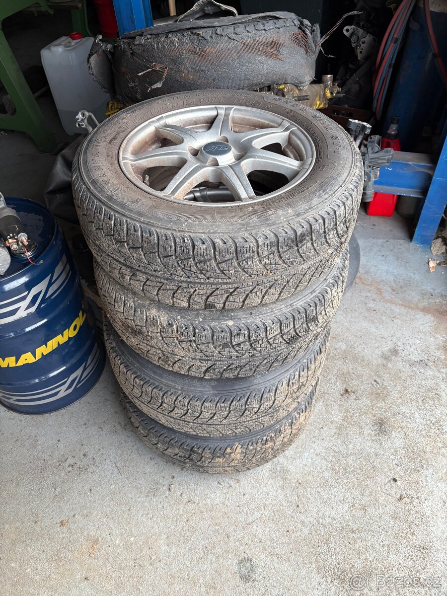 Prodam 4 kola s pneu fiat stilo, rozteč 4x108, stredova dira 56mm,et 38, zimni pneu na sezonu 195/65r15