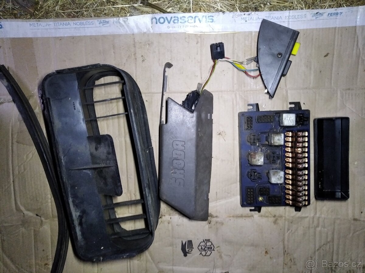 spínač světel 50kč, kryt kliky 50kč, sání topení 150kč, hrdlo palivové nádrže 150kč/ks, zrcátko 150kč, sání vzduchu 50kč, výdech vzduchu 50kč, mřížka chladiče 150kč, vzpěra chladiče 300kč, stahovač oken 150kč