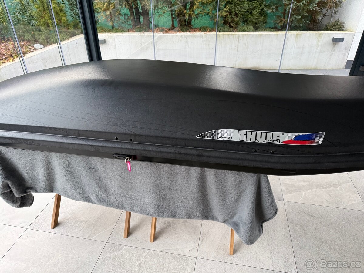 Prodám zánovní střešní box na lyže značky THULE, nepoškozený, pouze některé nýtky jsou uvolněné, lze lehce opravit.